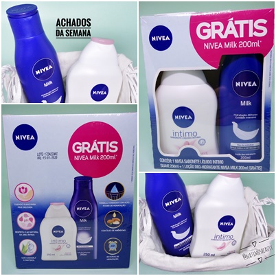 “O Sabonete Íntimo Suave da Nivea contém fórmula suave com ácido lático que ajuda a manter o pH natural da zona íntima. Pode ser usado diariamente para uma sensação de conforto, proteção e bem estar todos os dias. Hidratante Milk 200 ml contém Óleo de Amêndoas e Minerais Naturais eficiente contra o ressecamento e aspereza da pele, proporcionando hidratação intensiva, deixando-a visivelmente macia e sedosa por 18 horas.”