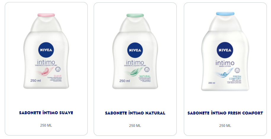 | Sabonete líquido íntimo Nivea Suave, Natural e Fresh Confort |