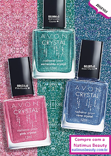 Novidades!! A partir deste mês de maio/16, através da Campanha 9 a Avon disponibilizou 3 novas cores de esmaltes da sua linha Nailwear PRO+ CRYSTAL que são àqueles esmaltes com efeito 3D bem brilhosos tipo glitter com purpurina, conhecida internacionalmente como ‘liquid sand’ por ter uma textura areiosa e super pigmentada.