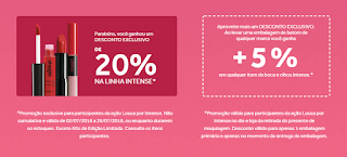 E ainda nesta tela final do processo de cadastro, aparecerá informações de DESCONTOS EXCLUSIVOS de 20% em toda a linha Intense + 5% OFF para todos os participantes desta ação “Louca por Intense”.