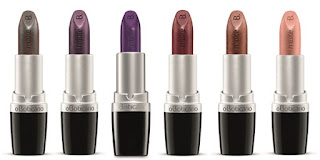 Nos batons líquidos a novidade bacana é este efeito mate que eles possuem, é metalizado mas sua fórmula é mate. Disponível nas cores (na ordem da foto acima): Purpleasure, Flowered e Nudesire, com volumetria de 6 ml cada.