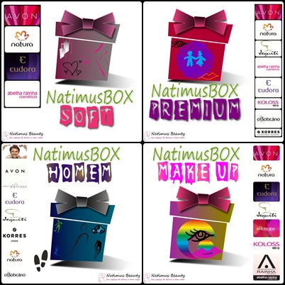 Temos 4 modelos disponíveis: Soft, Premium, Make-Up e a Homem. Box personalizada com cosméticos catalogados: Natura, Avon, Korres, Eudora, O Boticário, Jequiti, Abelha Rainha e Koloss.