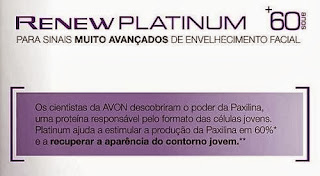 Os sinais muito avançados da idade ganharam atenção especial com o lançamento da linha Renew Platinum. A limpeza da pele após os 60 anos pede uma fórmula cremosa, como a de Renew Platinum Creme de Limpeza Facial 2 em 1, que remove as impurezas e a maquiagem da pele, deixando-a hidratada e com uma aparência macia e jovem.